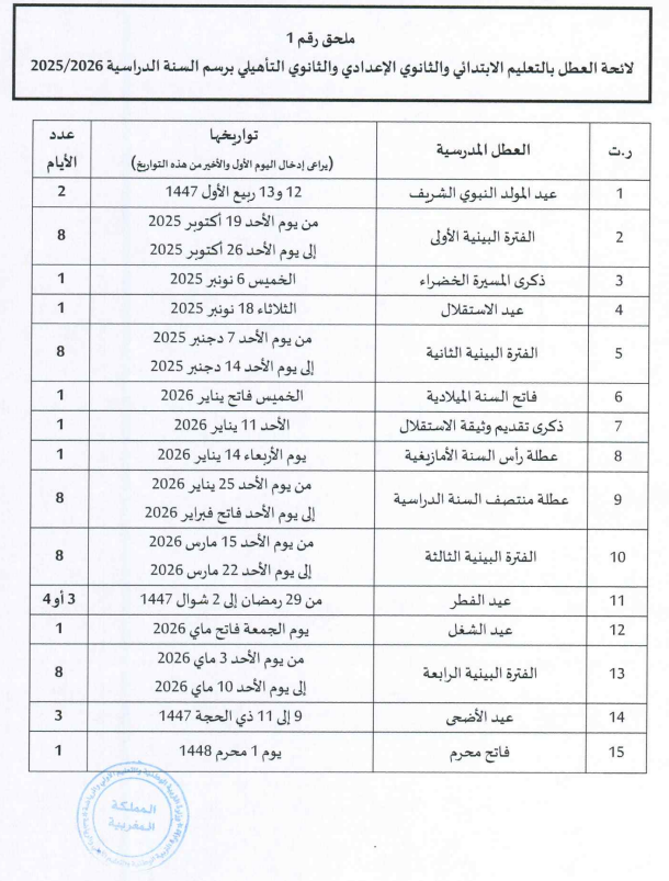 لائحة العطل المدرسية بالمغرب 2025-2026